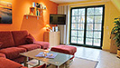 Zur Wohnung gehören eine Wohnkajüte (Wohnzimmer) mit TV und offener