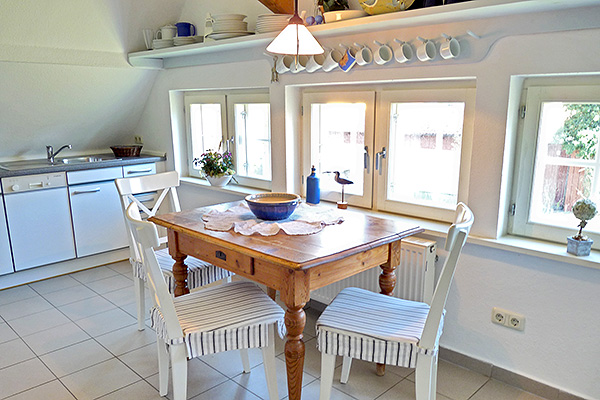 Küchenbereich mit Essecke: