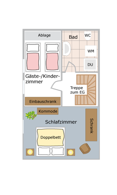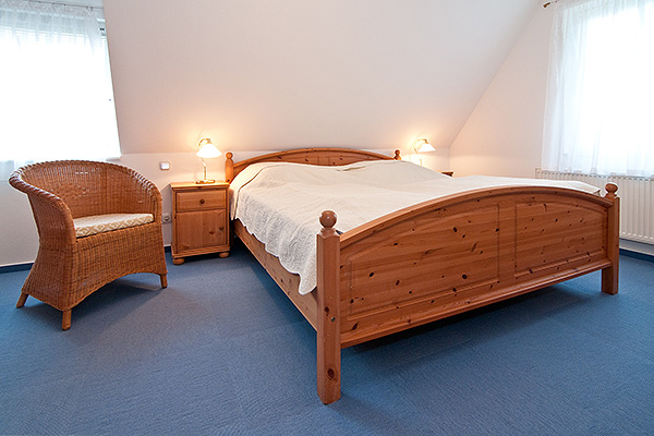 - 1x mit Doppelbett, großem Schrank und Kommode