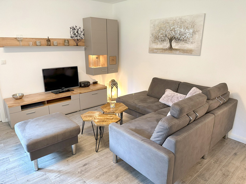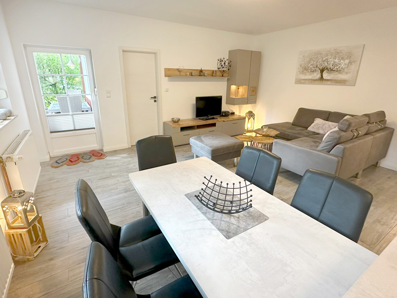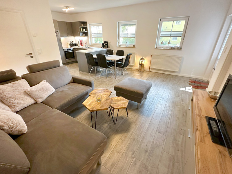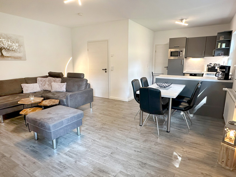 Wohnbereich mit angrenzendem Küchenbereich: