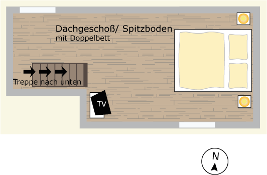 Schlafzimmer im Dachgeschoß (Spitzboden):
