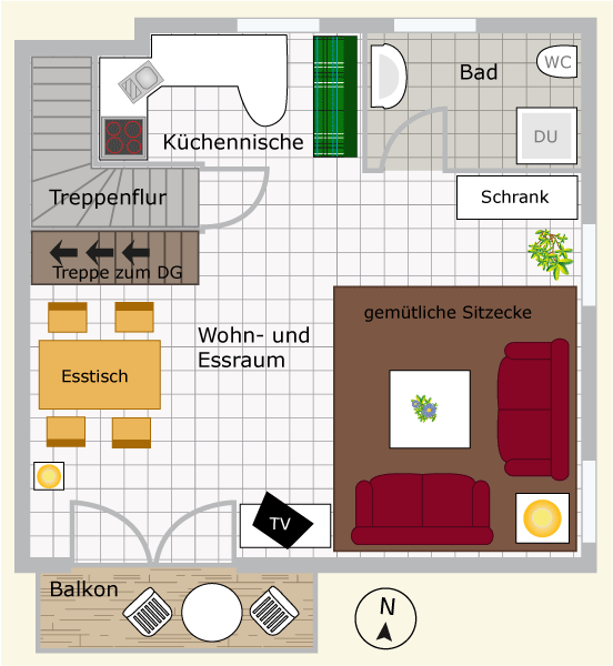 geeignet für 2 Personen + 1 Person (Schlafsofa)